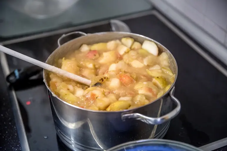 In einem theoretischen Einstieg können je nach Lerngruppe unterschiedliche Schwerpunkte gesetzt werden: die Apfelblüte, die Bestäubung durch Insekten, der Aufbau und die Bestandteile des Apfels, verschiedene Apfelprodukte sowie die Verwendung von Pektin. Das Highlight ist die Apfelernte im Garten! Danach backen die Kinder gemeinsam Apfelkuchen oder beginnen mit dem Saftpressen, um daraus Apfelgelee zu kochen. Auch ein individuelles Backen und Belegen von Apfeltartes ist möglich.